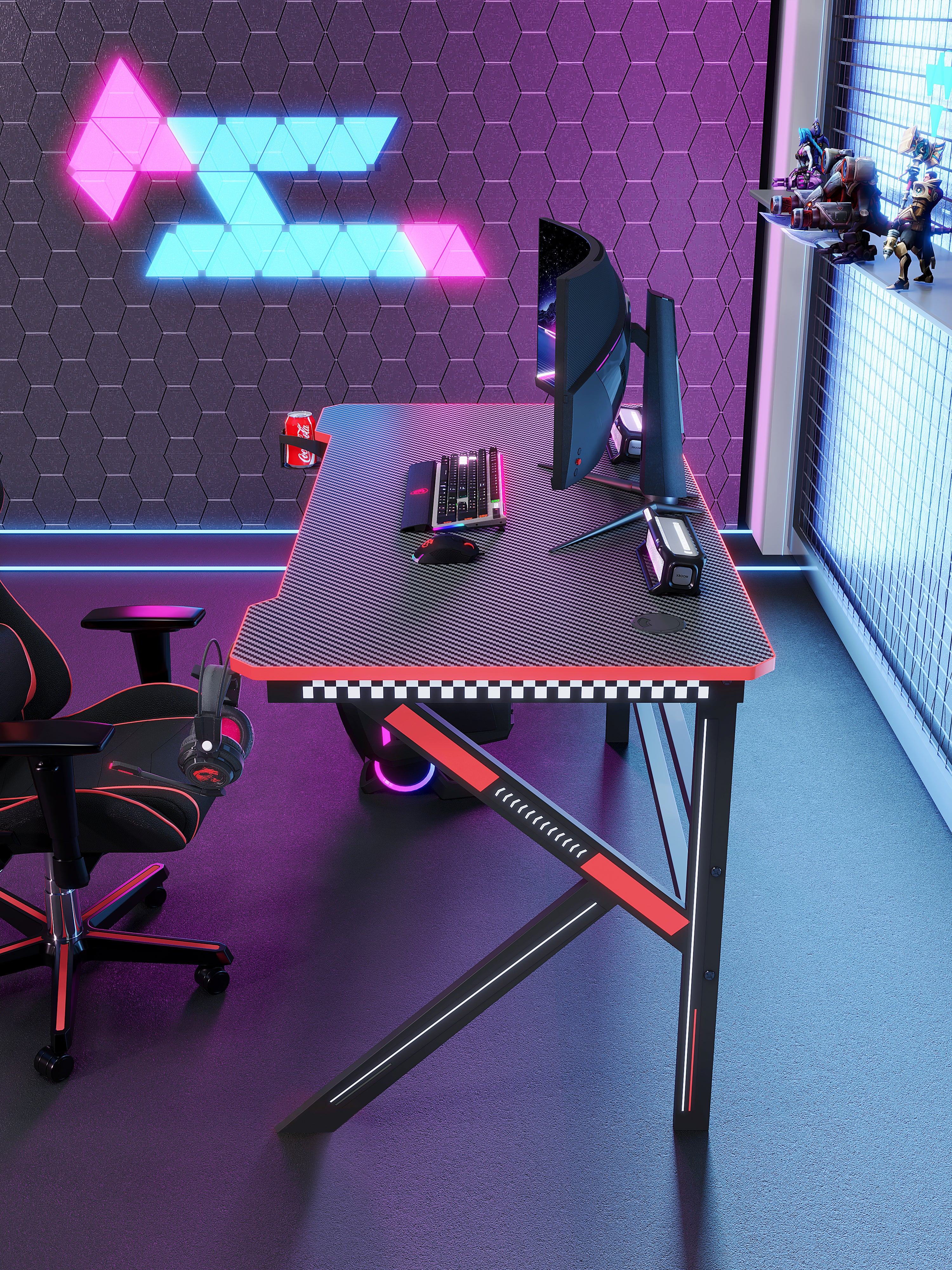The Black Phantom Gaming Desk is designed for serious players who demand both space and flexibility. Featuring an adjustable depth from 500 mm to 800 mm, it adapts to different setups whether you prefer a compact footprint or an expanded surface for multi-monitor rigs. Its sleek black finish and angled legs bring stability and a modern, aggressive look to any gaming room or studio.