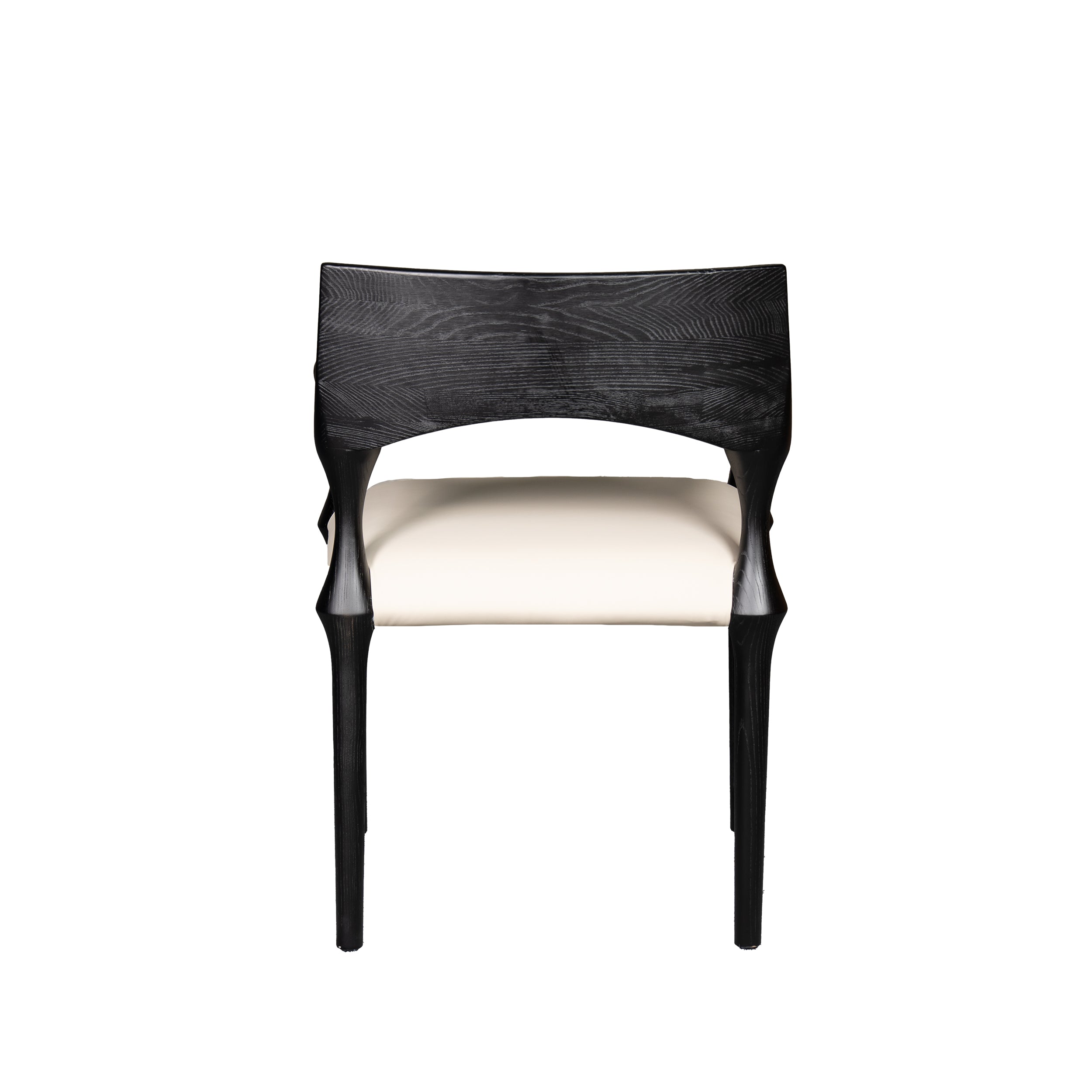 Inspired by sculptural elegance, the Arta Armchair combines bold curves with refined details. The deep black ash wood frame and premium upholstery create a timeless sophistication, perfect as both a dining and accent chair.