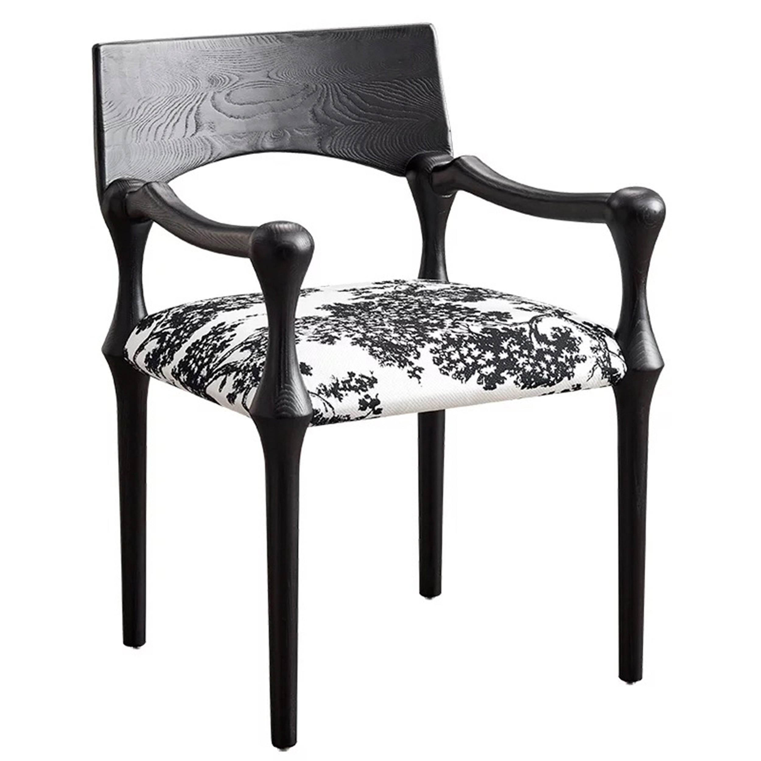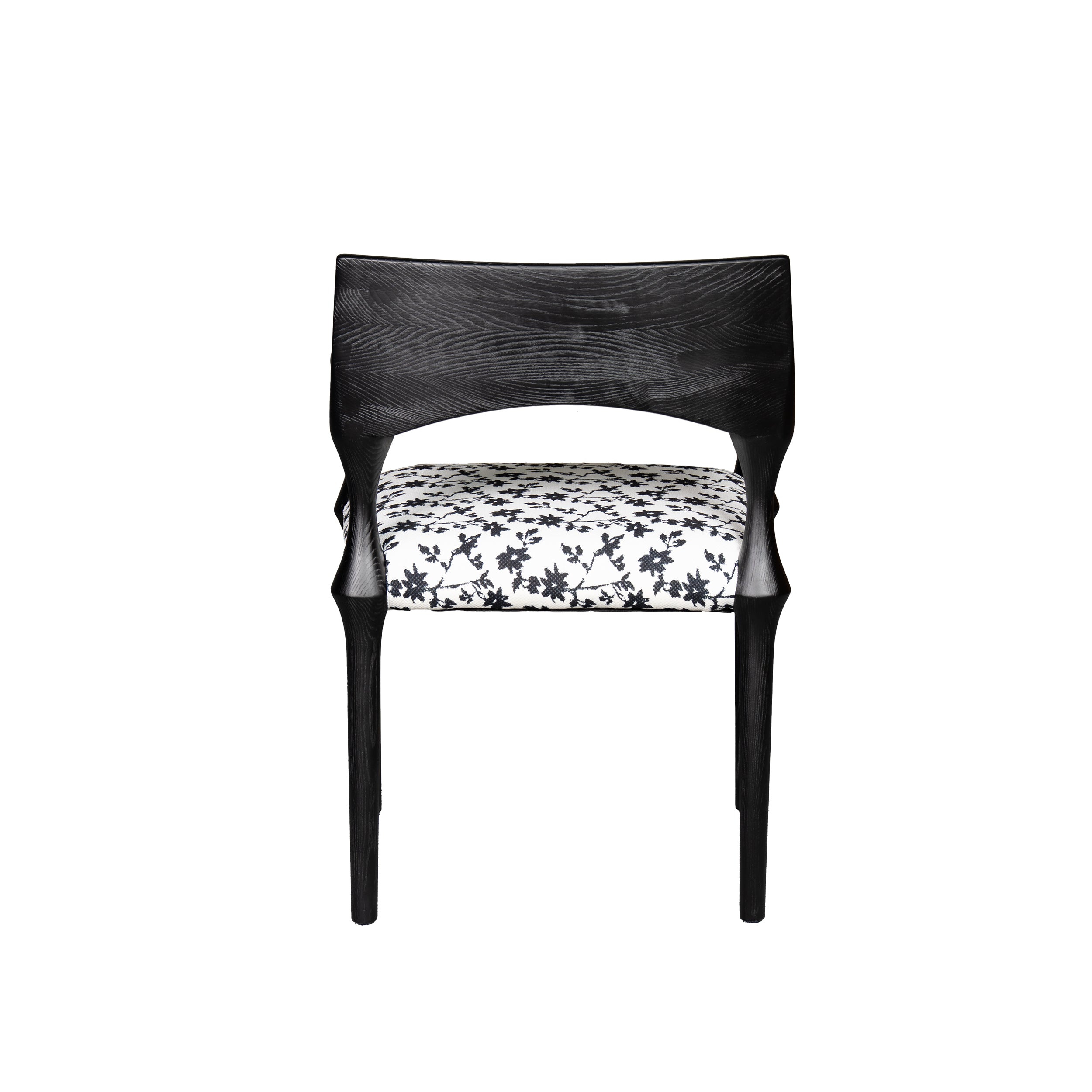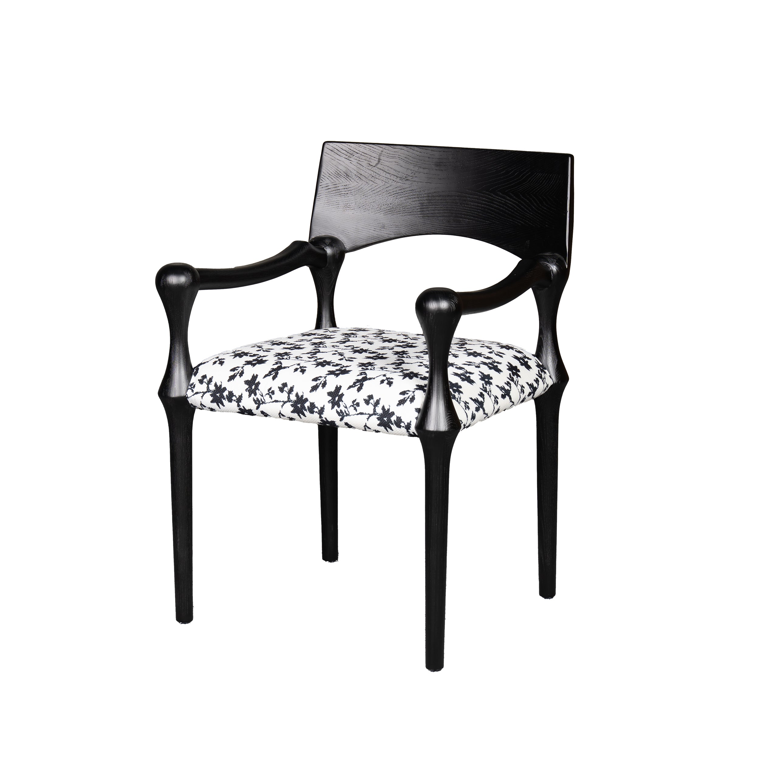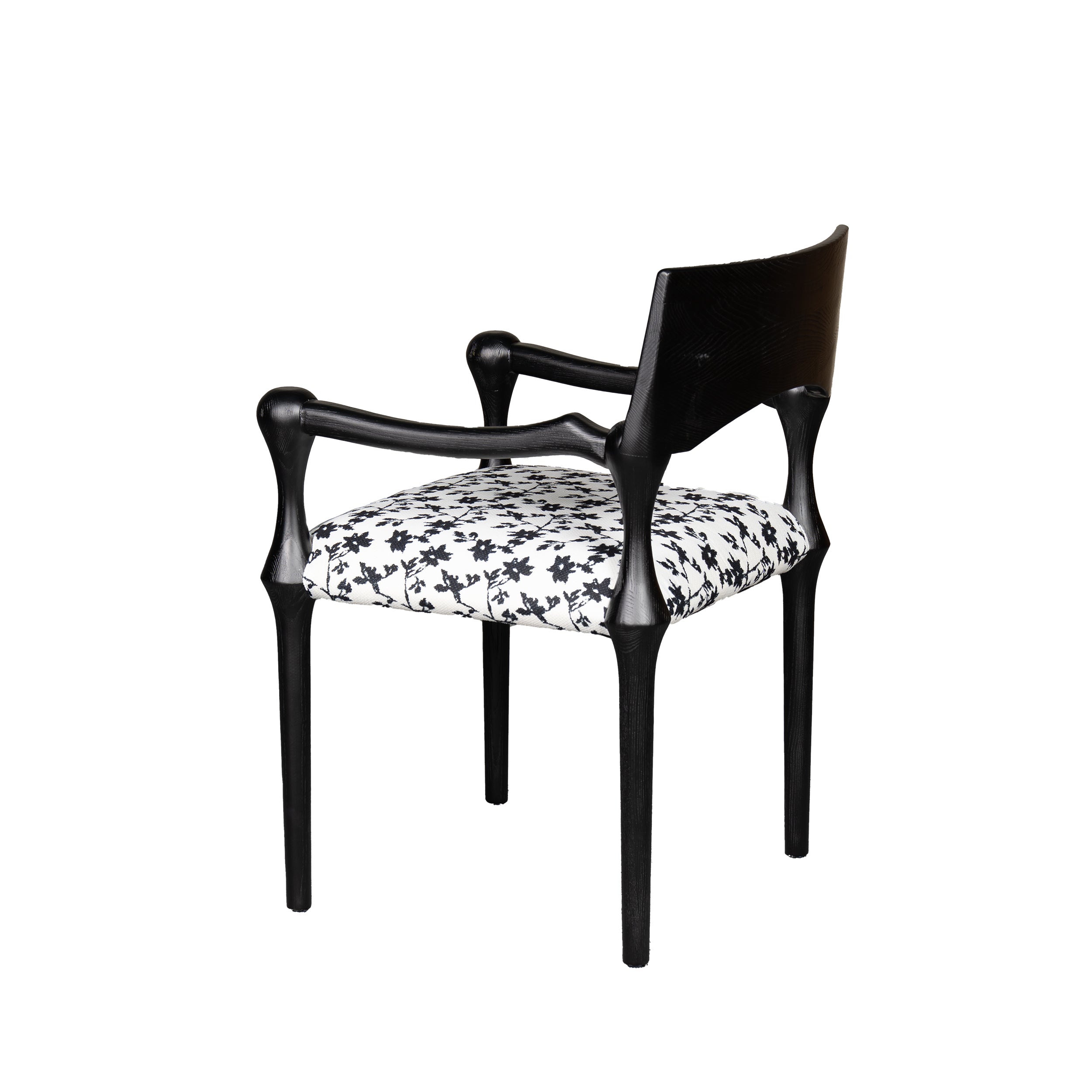 Inspired by sculptural elegance, the Arta Armchair combines bold curves with refined details. The deep black ash wood frame and premium upholstery create a timeless sophistication, perfect as both a dining and accent chair.
