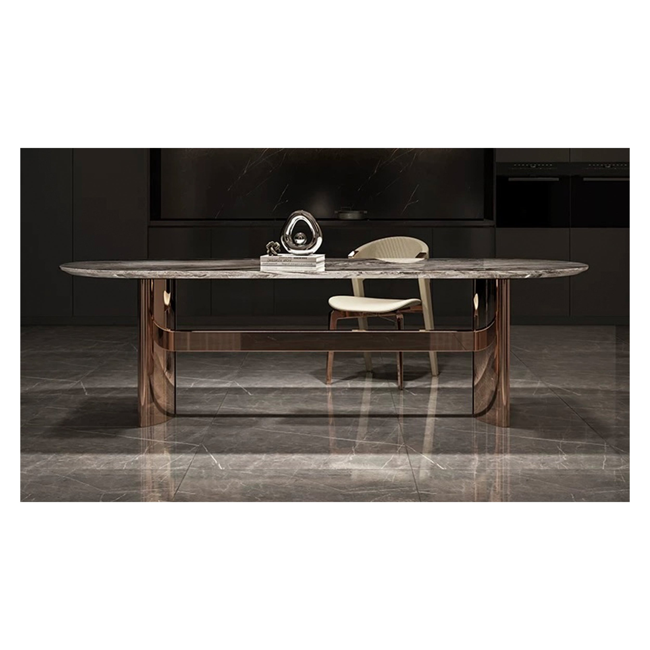 The SATURA Dining Table brings a refined modern style.