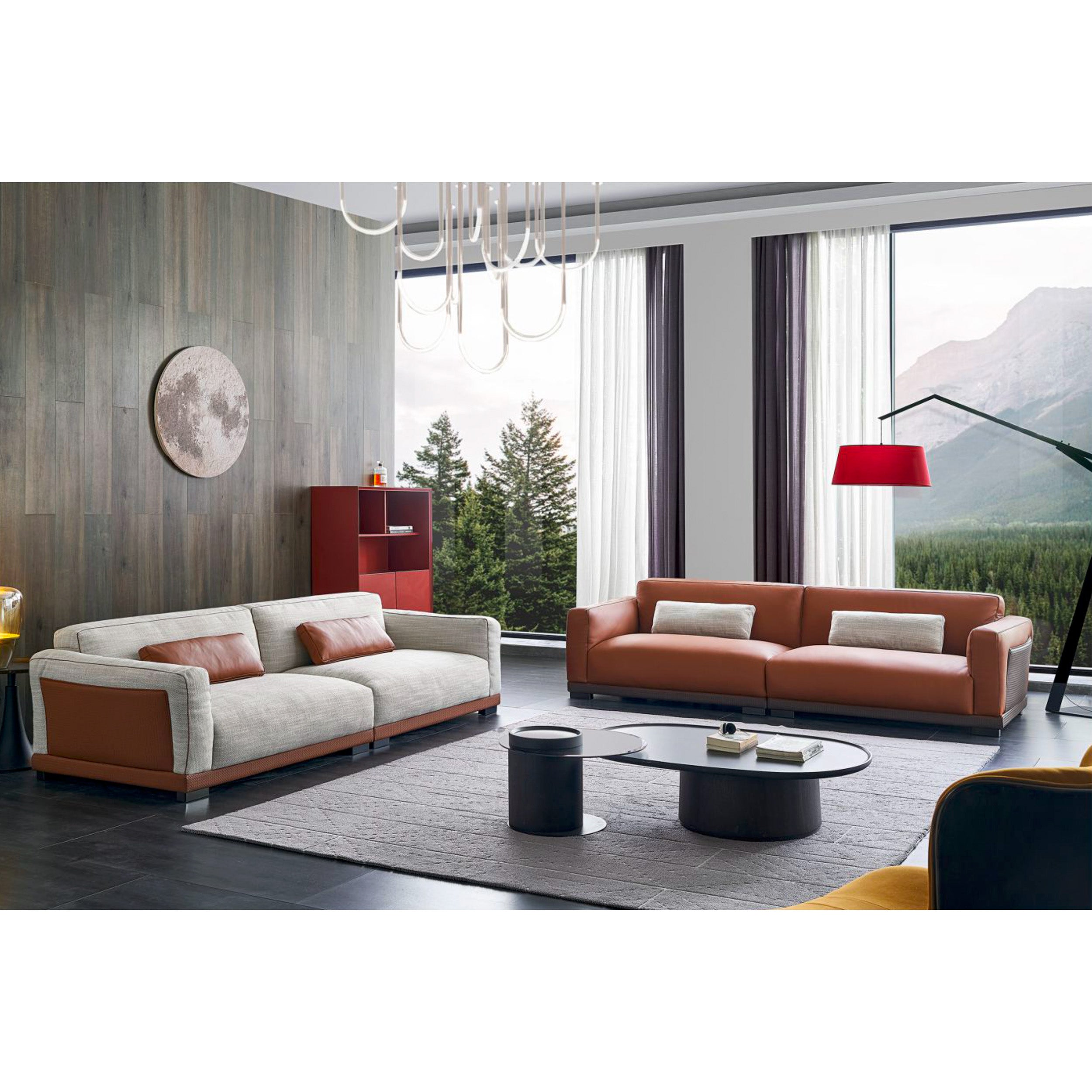 Elegant cotton-linen sofa featuring a solid wood frame with leather-wrapped base, high-resilience foam, and down feather seating. Designed for both comfort and timeless style, perfect for modern living spaces.