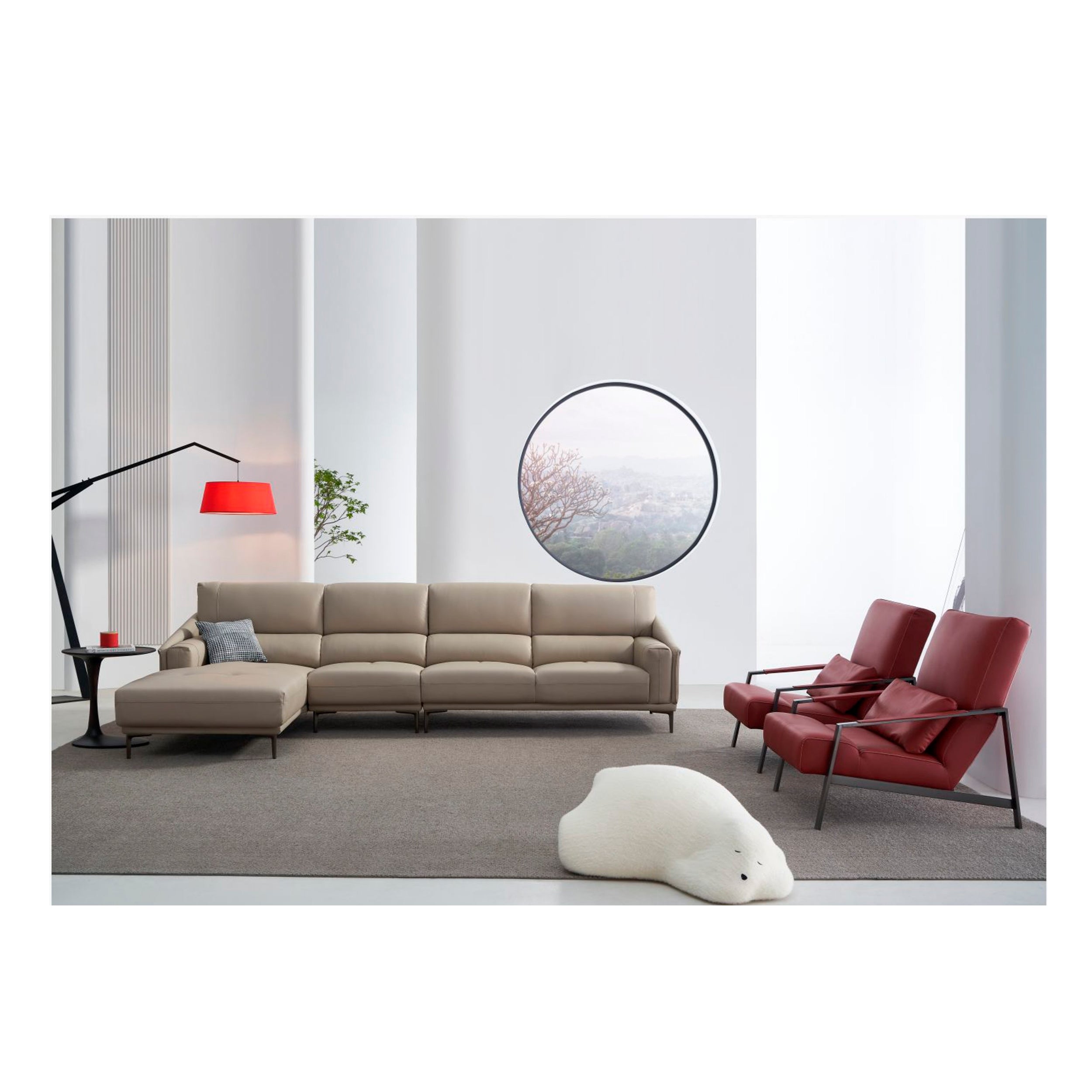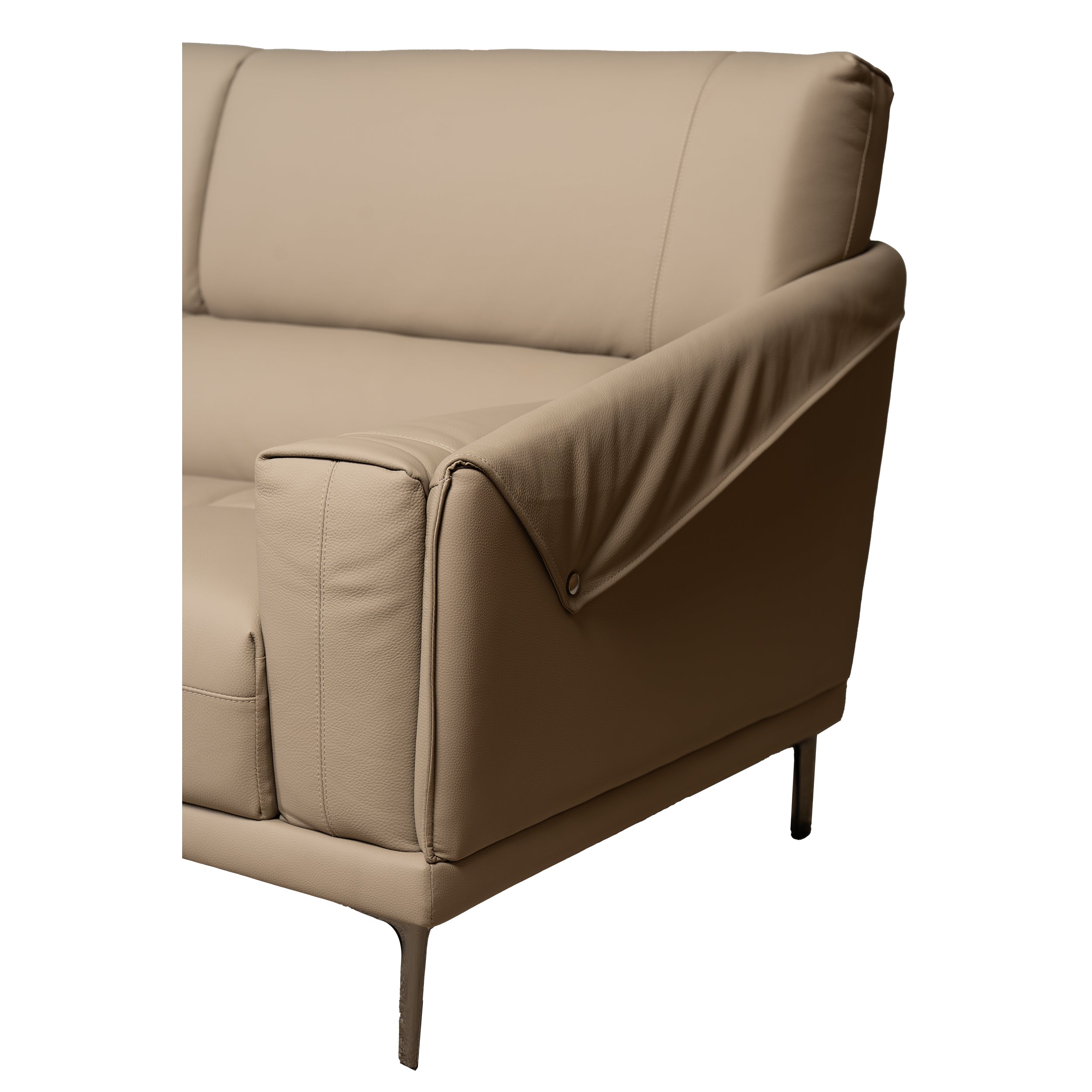 This modular sofa pairs premium cowhide leather with a solid larch wood frame for durability. Its high-resilience foam and matte metal legs offer both comfort and strength. Designed for modern living rooms, it balances elegance with functional versatility.