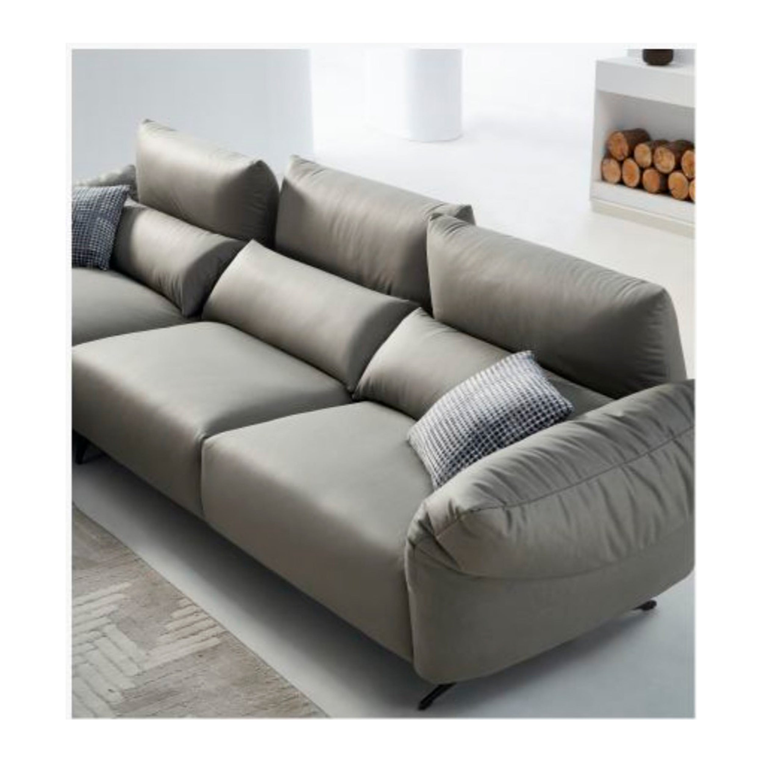 Premium leather three-seater with right chaise longue, featuring wide armrests and plush cushions for superior comfort. Combines minimalist design with practicality, perfect for modern medium to large living rooms.