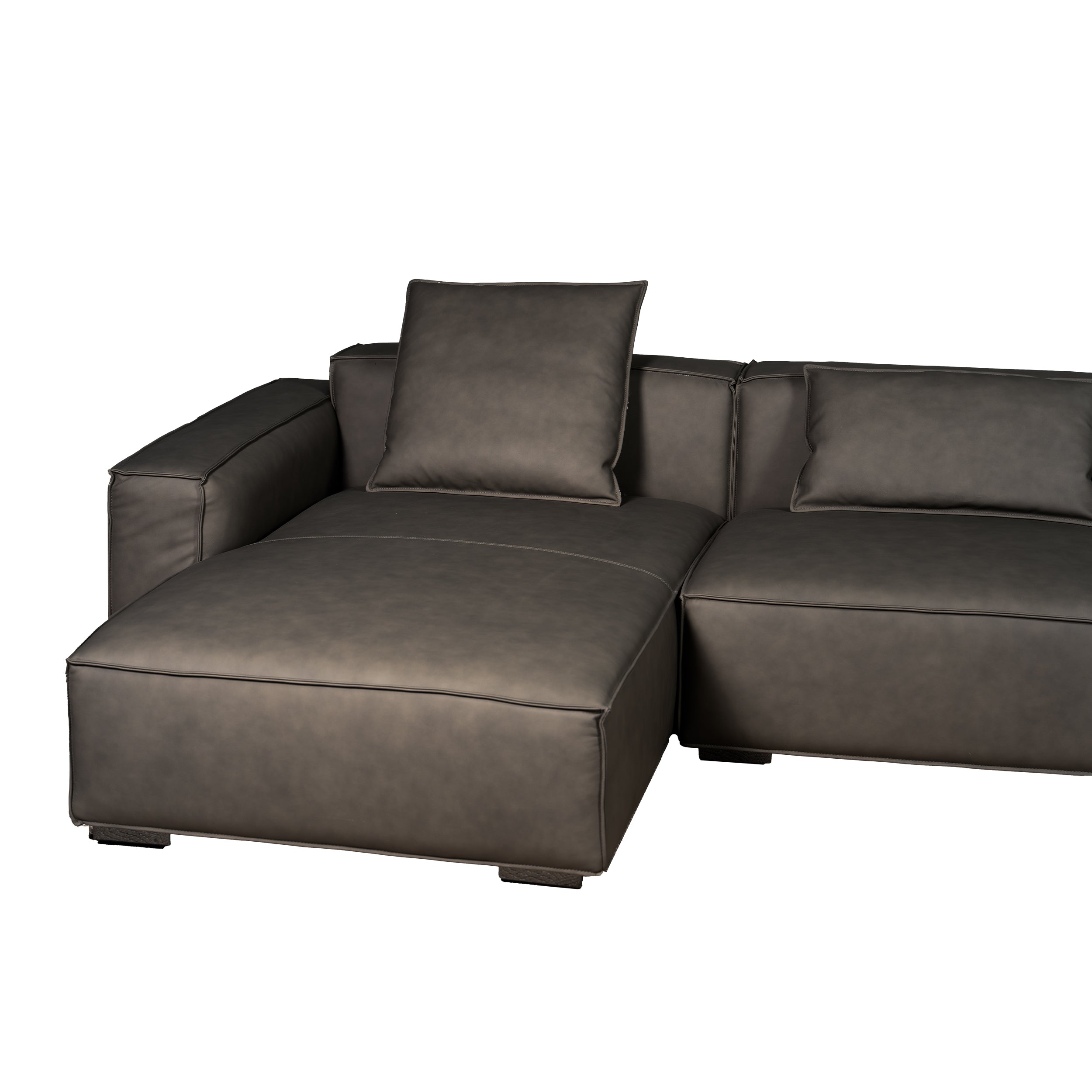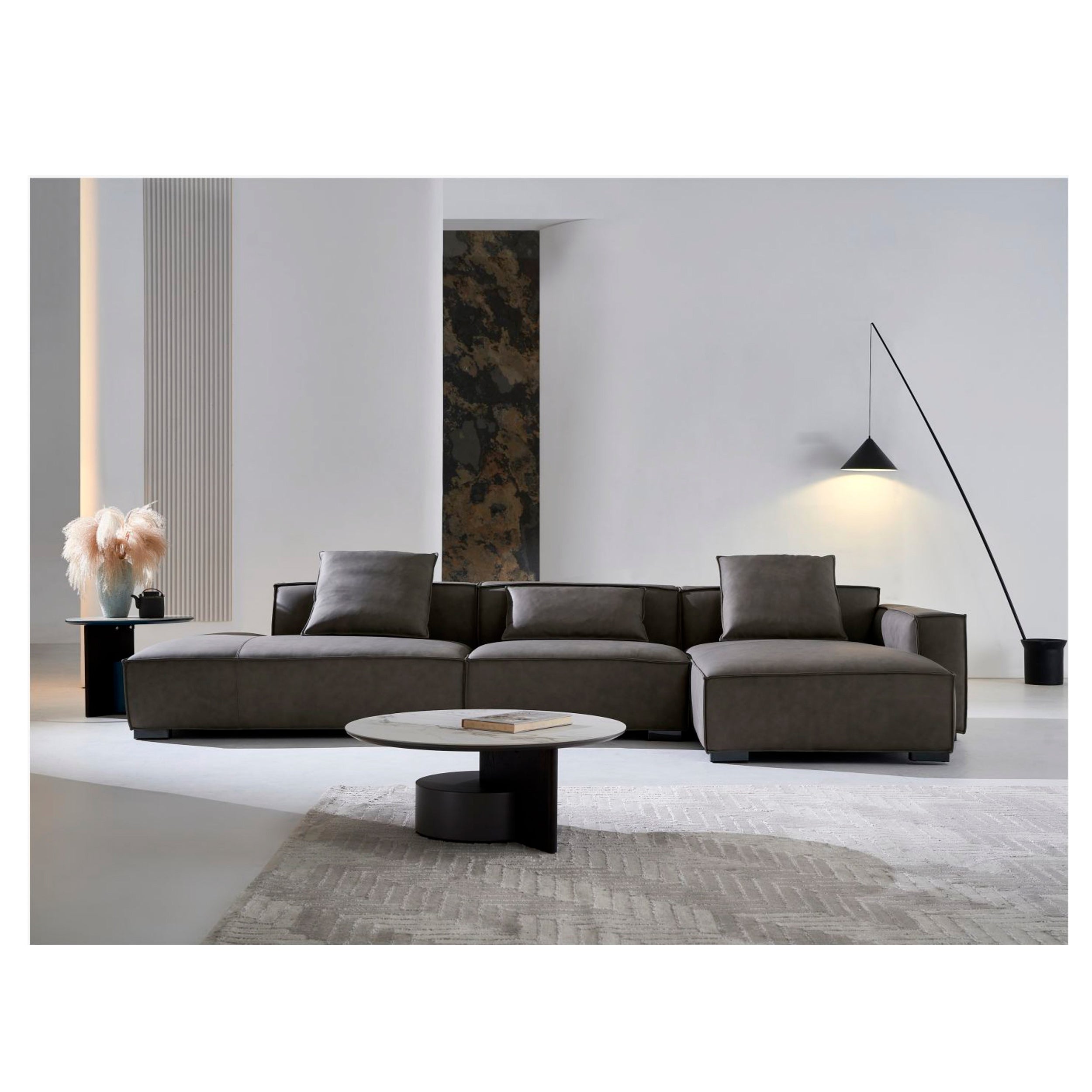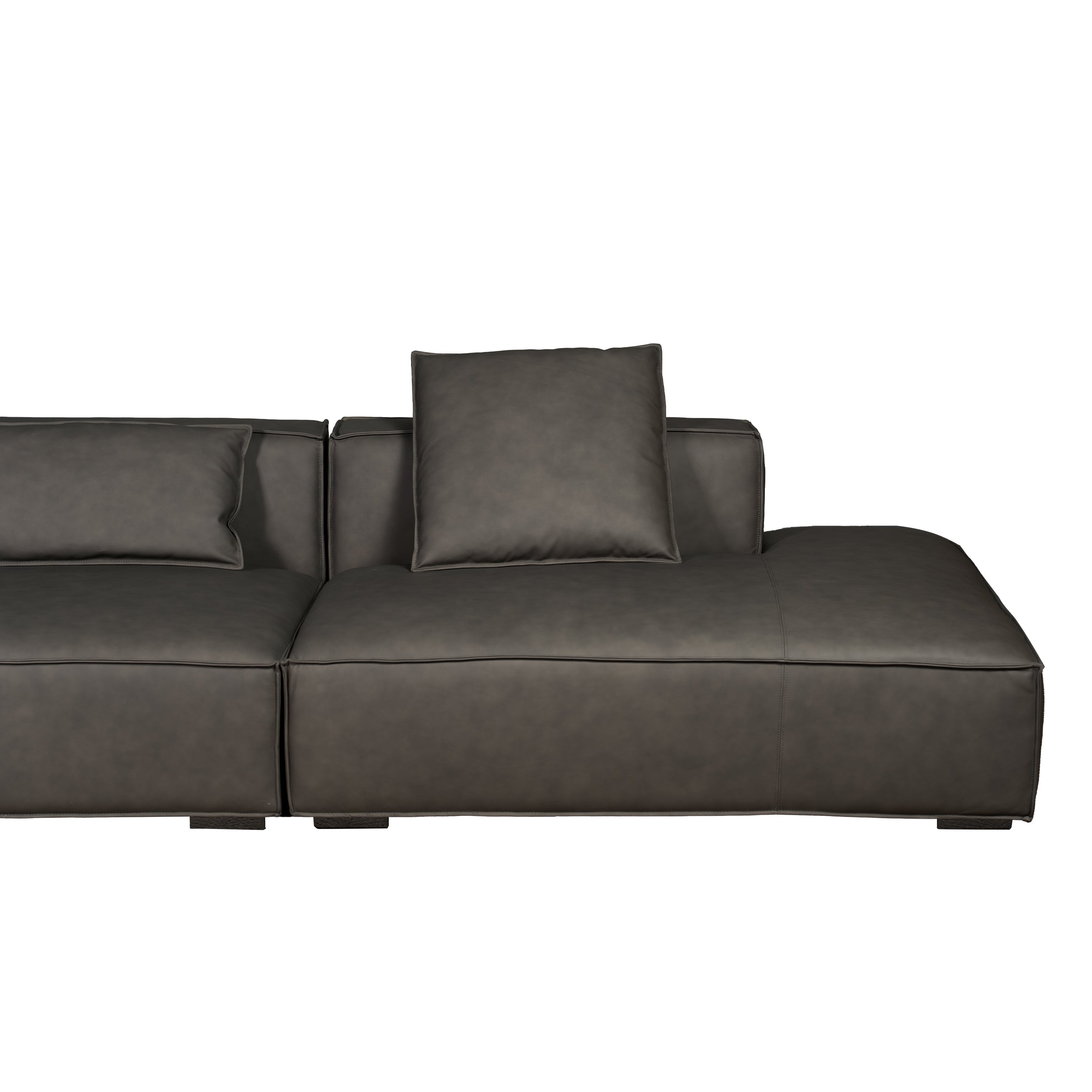 Luxurious low-profile modular sofa upholstered in premium cowhide leather. Plush foam and down filling deliver supreme comfort, while the flexible configuration adapts to any living space.